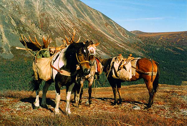 If you plan your hunting trip with Tom, you get the full Alaska experience. He leads hunts with saddle and pack horses to access remote mountain campsites. The local autumn hunting season lasts from August 10 to September 20. Dall sheep are the preferred game in August, while September is best for moose, grizzlies, and combination hunts for multiple species.