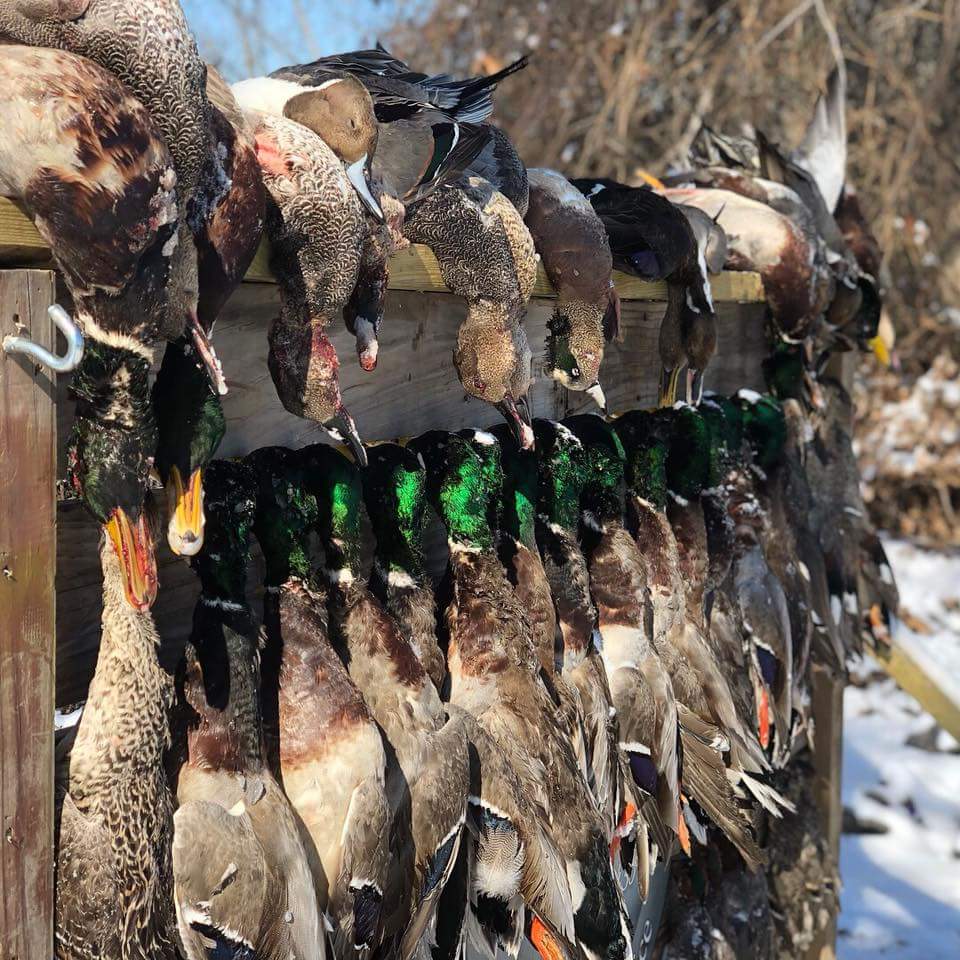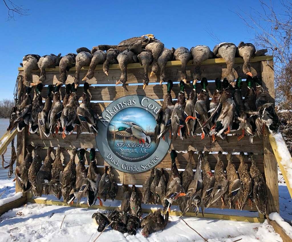 The 2019-2020 spring conservation snow goose season was a great success averaging 37 birds per hunt. Our 2021 Spring Season was great as well, averaging 33 birds. We hunt two different styles of snow goose setups. One snow goose setup is a large permanent decoy spread with anywhere from 1500-1800 skyfly decoys in a major migration area where snow geese funnel through each spring. On the permanent decoy setup as well as our mobile spread setups we run multiple speaker electronic callers, rotary machines, and several fliers. The permanent spreads produce very well on sunny days with a south wind once the spring snow goose migration starts in southern Arkansas. The other spread we run often until the spring migration begins is a mobile spread hunting primarily the x (feed fields) with primarily 1000-1500 decoys. We have two full-time guys who ride all of our property each day to see what fields the snow geese are feeding on. Once the geese leave these feeding fields they move to a roost pond where they stay overnight and return to feed in the morning hours. We watch the snow geese every day of the season, morning and evening to find exactly where the birds are now and where they will be the next day. We usually go in on the morning of hunts and set up on these x fields to ensure decoys do not have any frost on them. Both styles of hunts are great for our spring conservation snow goose season, but each one has a time and place in the season. With over 40,000 acres of prime snow goose hunting property here in Stuttgart, you’re sure to have a blast!